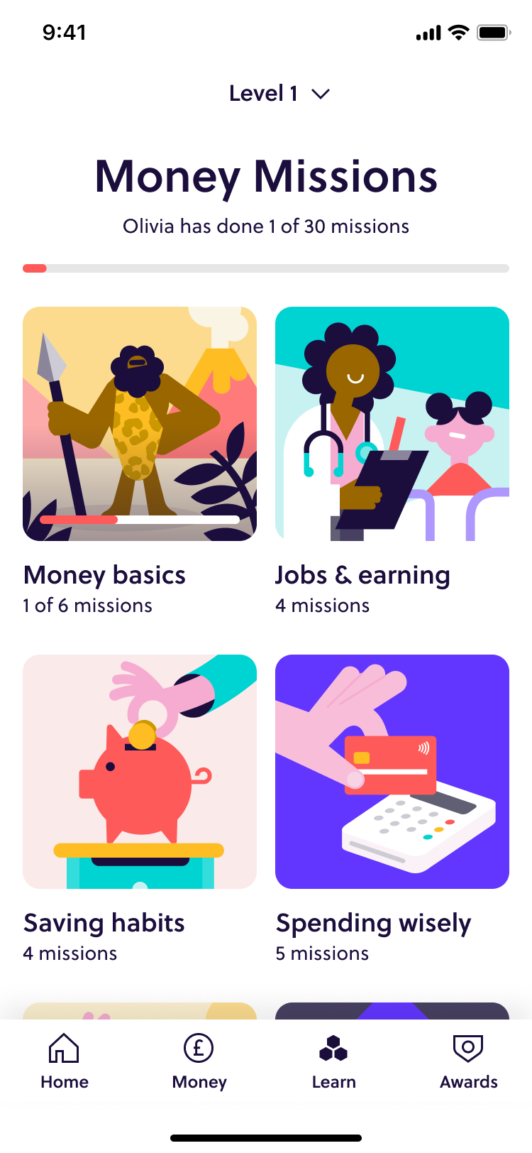 Designed and launched Money Missions, an in-app learning experience for kids and teens focused on real-life financial skills. Owned the design from BETA to full launch, delivering 1 level, 9 skill areas, and 30 interactive lessons as part of the Education squad.